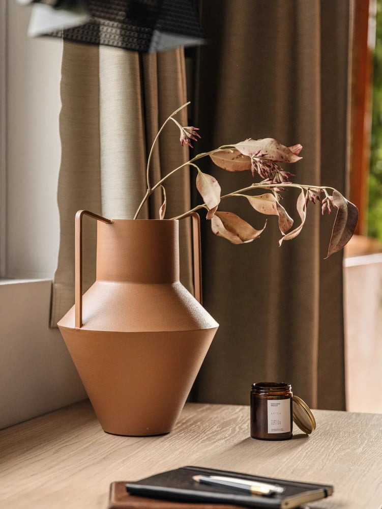Mám radost, když jsou doplňky i praktické, ne pouze dekorační. V našem případě jsem se tak zaměřila opět na světlo, vázy, rámy na obrazy a v neposlední řadě na polštáře a plédy, abych vytvořila příjemné místo pro odpočinek. Vše v přírodních tónech.