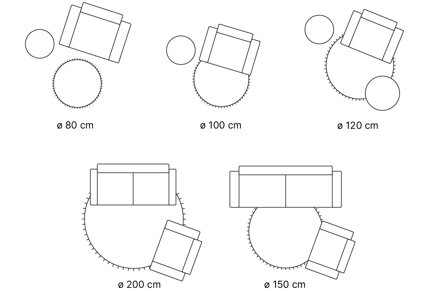 Oblíbeným trikem je i jeho využití v menších místnostech, které opticky zvětší, zejména je-li světlé barvy. Platí však, že průměr kulatého koberce by měl být alespoň takový, jako je šířka sedačky.