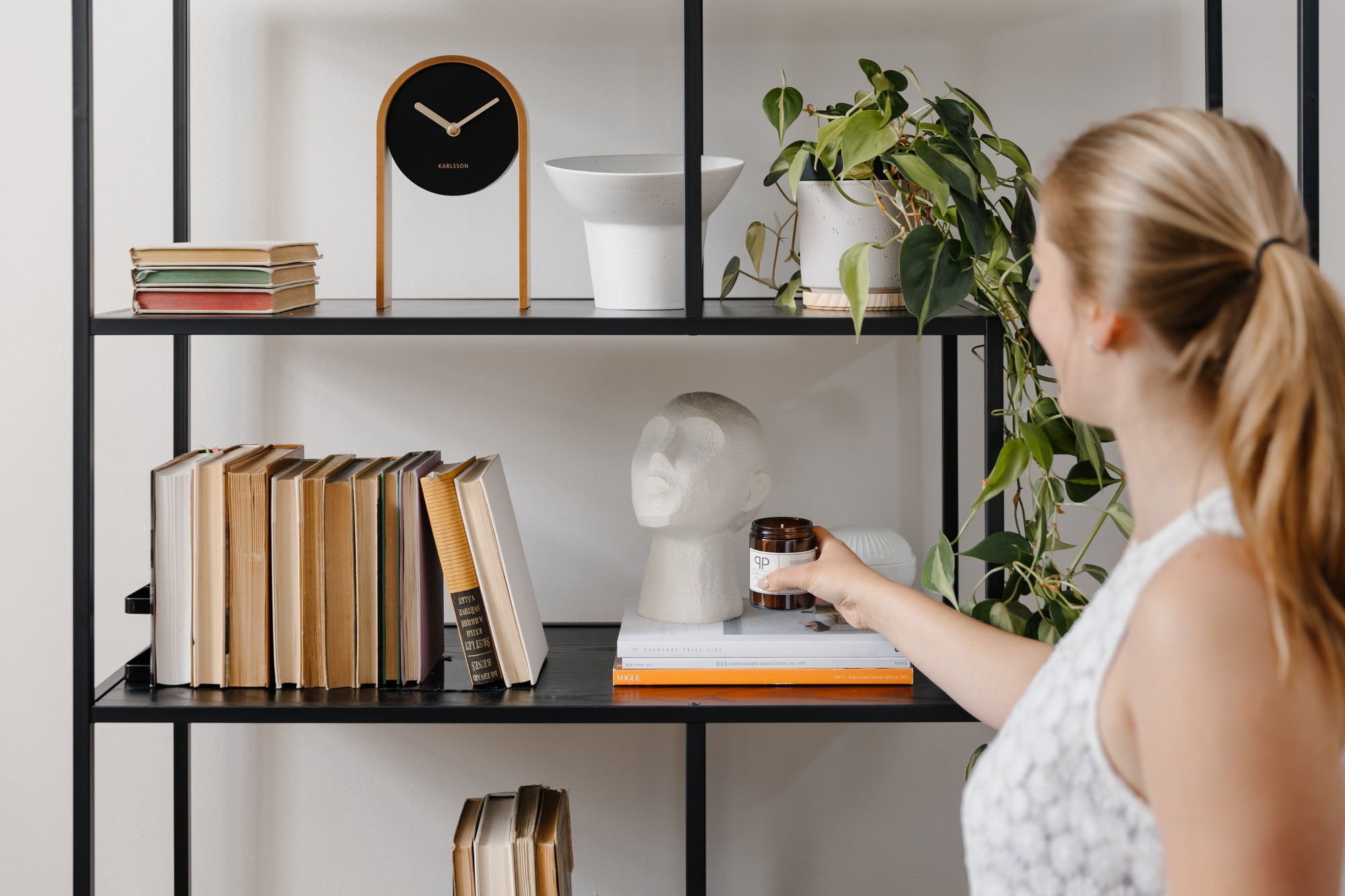Jako zarážky můžete použít sošky, misky, vázy či svíčky. Dodají knihám stabilitu a upoutají na ně pozornost.