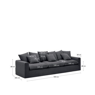 Pohovka NoraLněná, se snímatelným potahem, antracitová, vícemístná, šířka 340 cm