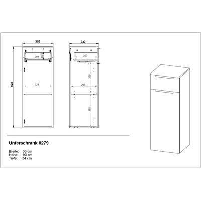 Vysoká/závěsná, z dřevotřísky, povrchová úprava: melamin, antracitová, šířka 36 cm, výška 93 cm, hloubka 34 cm