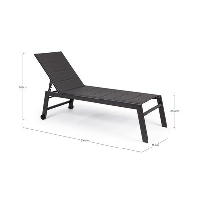 Zahradní lehátko Hilde od značky Bizzotto. Nabízí polohovatelnou opěrku zad a praktická kolečka pro snadnou manipulaci.