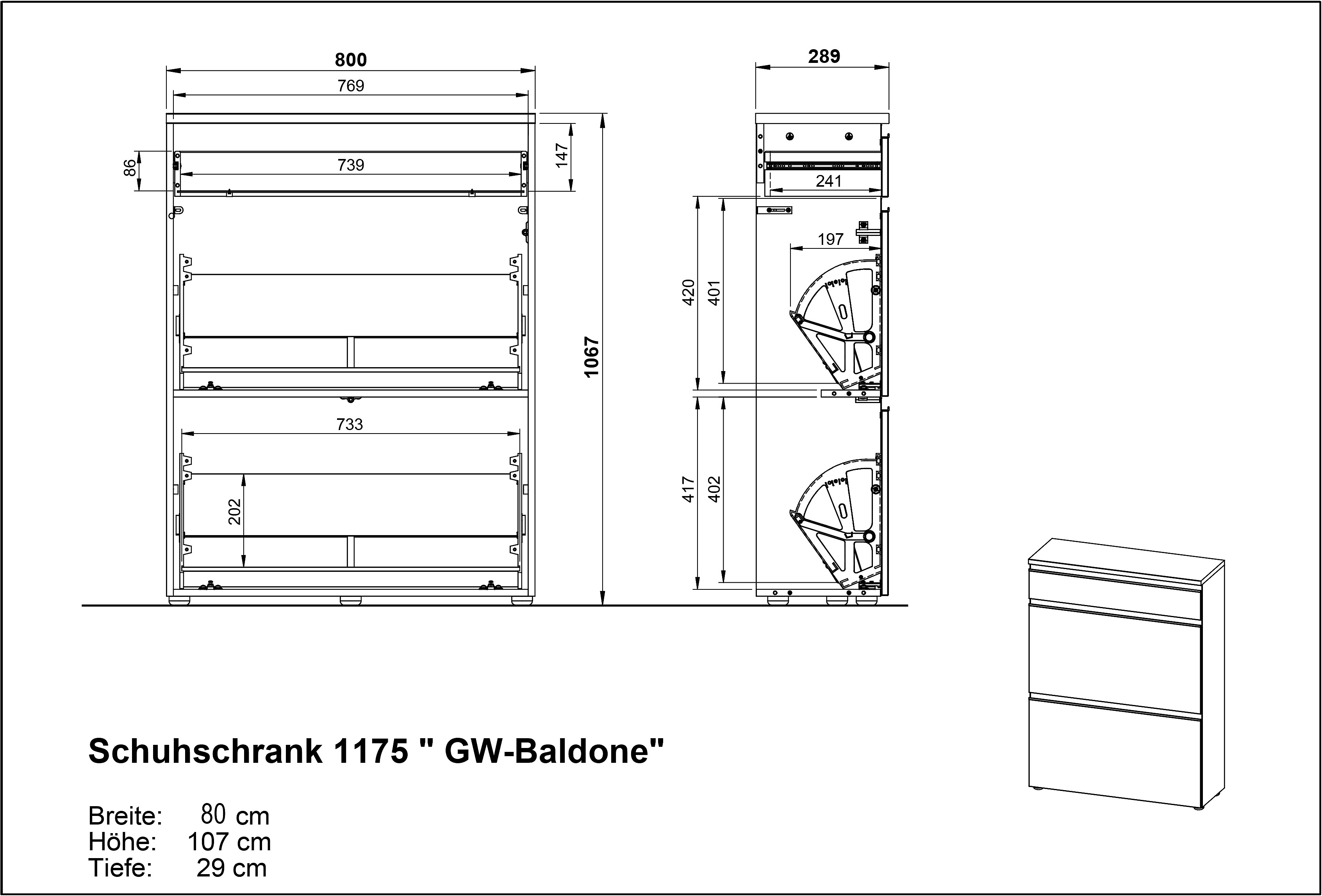 Z dřevotřískyPovrchová úprava: melaminAntracitovýŠířka 80 cmVýška 107 cmHloubka 29 cm
