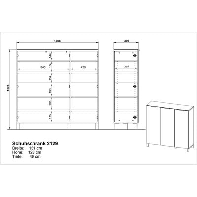 Z dřevotřískyPovrchová úprava: melamin/povrchová úprava: skloLesklýŠedýPočet párů bot 32 Šířka 131 cmVýška 128 cmHloubka 40 cm