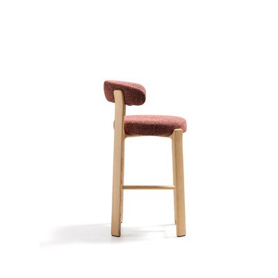 Barová židle Granite od značky Kave Home. Vyniká svým čalouněním z certifikovaného recyklovaného materiálu a nohami z udržitelně získaného jasanového dřeva.