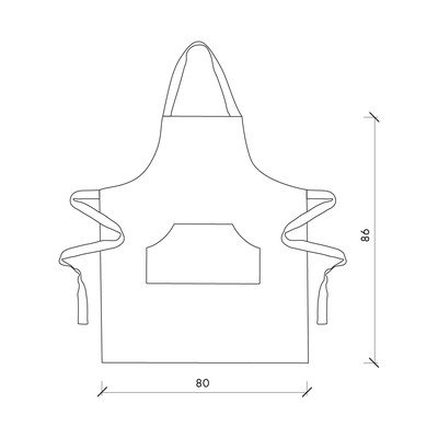Praktické dlouhé zavazování v pase a nastavitelný popruh kolem krku umožňují přizpůsobit zástěru každé postavě. Nechybí ani praktická přední kapsa.