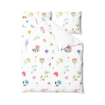 Povlečení FleurNa dvoulůžko, na zip, bavlněné, s květinovým vzorem, bílé, 200x200 cm