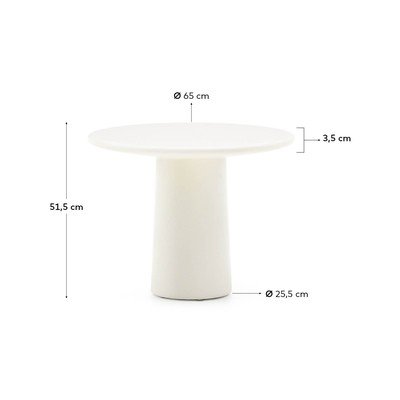 Konferenční stolek Albanella od značky Kave Home představuje harmonické spojení stylu a praktičnosti. Tento kulatý stolek s lesklou povrchovou úpravou je vyroben z GFRC, kompozitního materiálu z cementu vyztuženého skleněnými vlákny. Díky tomu je lehký, odolný proti opotřebení a zároveň si zachovává robustní konstrukci.