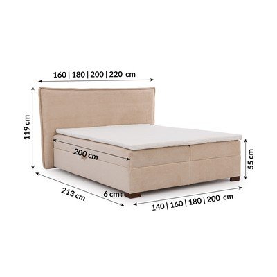 Dobré vědět: Součástí je matrace s tloušťkou 14 cm a 5 cm topper. Celková tloušťka je tedy 19 cm.