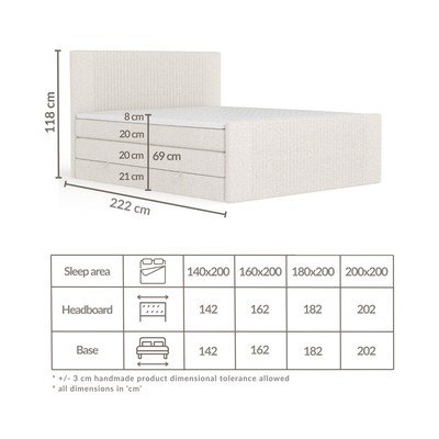 200x200 cmS úložným prostoremČalouněnáS matrací/s topperemRuční výroba/snadná montážBéžová