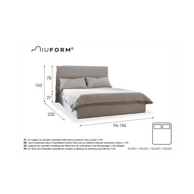 Měkké čelo této postele Sleepy Luna připomíná oblak. Použití látky s 3D efektem posiluje její jedinečný charakter. Části hlavové opěrky jsou na každé straně svázány šňůrkami - zajímavý detail, který upoutá vaši pozornost. Pístový mechanismus otevírání zajišťuje snadný přístup do úložných prostor, ve kterých není záměrně namontováno dno. To umožňuje uložení větších a těžších předmětů.