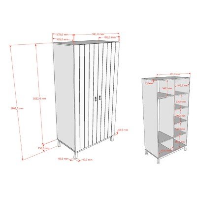 Z MDF, povrchová úprava: barva, béžová, šířka 99 cm, výška 196 cm, hloubka 58 cm