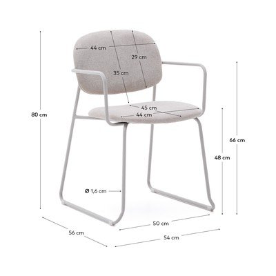 Jídelní židle Meli od značky Kave Home. Pohodlný sedák a opěrák z žinylky doplňuje kovová konstrukce s chrániči nohou pro ochranu podlahy.