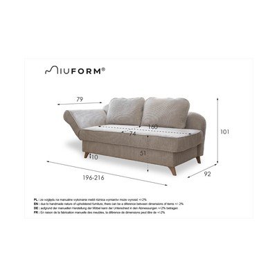 Levý rohManšestrováBéžováŠířka 216 cmHloubka 92 cmVáha 62 kg