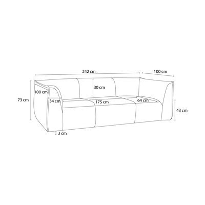 Manšestrová, béžová, trojmístná, šířka 242 cm