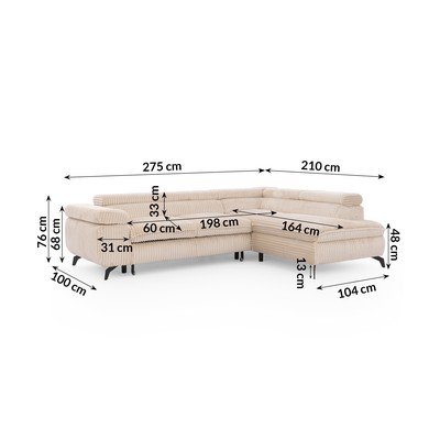 ManšestrováPolohovací/rozkládací/s úložným prostoremPravý roh/do LBéžováVhodné pro mazlíčky/odolné vůči skvrnámČtyřmístnáŠířka 275 cm
