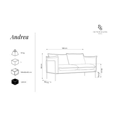 Přineste do své domácnosti pohodlné a stylové kousky. Pohovka Andrea od Interieurs 86 vás zaujme svým barevným vzhledem s černým rámem, který podtrhuje její moderní design. Příjemný povrch tvoří ze 70 % polyester z recyklovaných PET lahví a také technologie, díky které je čištění skvrn snadnější.