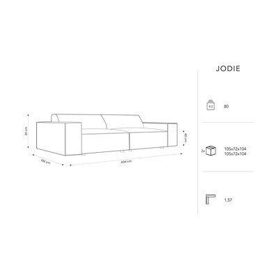 Obklopte se elegantní strukturou bouclé tkaniny pohovky Jodie. Strukturovaná tkanina má viditelnou plochou vazbu vláken. Použití polyesterových vláken nejvyšší kvality k výrobě této tkaniny umožňuje, aby byla robustní, ale zároveň jemná na dotek. Tento světlý kousek nejlépe vynikne v moderních interiérech.