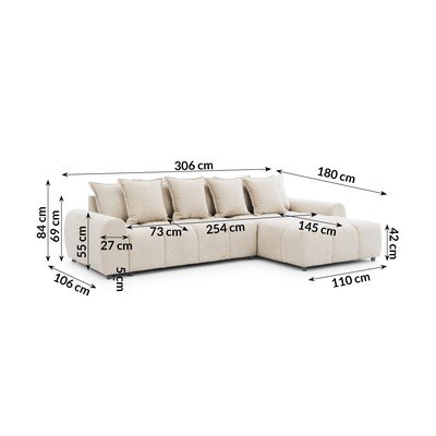 Pravý roh/s lenoškouBéžováVoděodolná/odolné vůči skvrnámČtyřmístnáŠířka 306 cm
