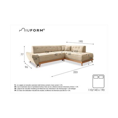 Rozkládací/s úložným prostoremPravý roh/do LBéžováČtyřmístnáŠířka 253 cmHloubka 190 cmHloubka sedáku 62 cm