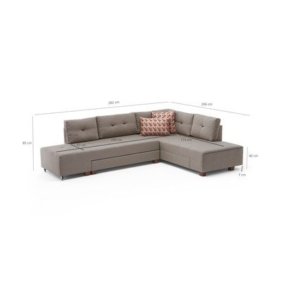 RozkládacíPravý roh/do LOdolné vůči skvrnámBéžováVícemístnáŠířka 280 cmHloubka 206 cmHloubka sedáku 63 cm