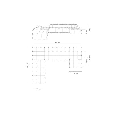 Sametová, pravý roh/do "U", béžová, vícemístná, šířka 376 cm