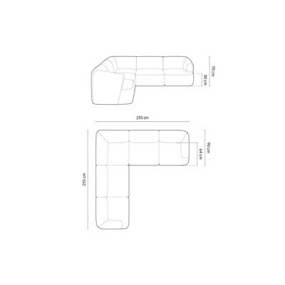 Sametová, pravý roh/levý roh/do L, béžová, vícemístná, šířka 255 cm