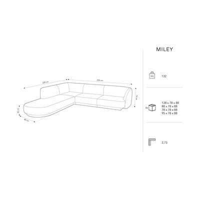 SametováLevý rohBéžováDvoumístnáŠířka 260 cmHloubka 90 cmHloubka sedáku 60 cm