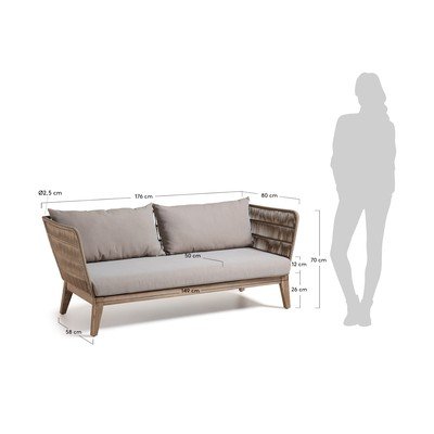 Zahradní pohovka BellanoTrojmístná, hnědá/béžová, nosnost 250 kg, šířka 176 cm, výška 70 cm, hloubka 80 cm