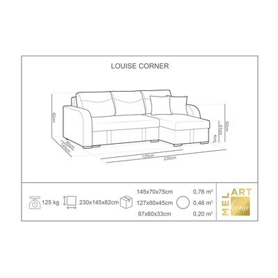 ŽinylkováRozkládací/s úložným prostoremPravý roh/levý roh/variabilní roh/s lenoškouBíláTrojmístnáŠířka 230 cmHloubka 80 cmHloubka sedáku 57 cm