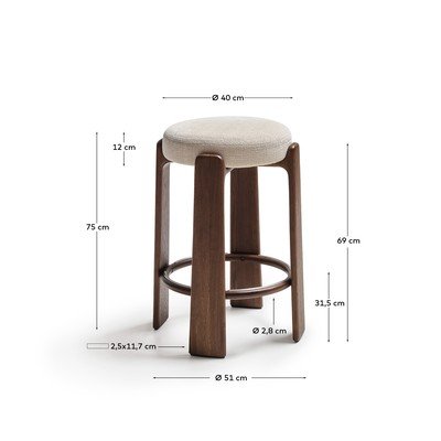 Barová stolička Granite od značky Kave Home. Čalounění z recyklovaného materiálu a konstrukce z masivního jasanového dřeva zajišťují odolnost a šetrnost k životnímu prostředí.