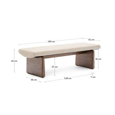 Žinylková, dřevěná/polstrovaná, béžová/v tmavě přírodní barvě, šířka 150 cm, hloubka 51 cm, výška 45 cm