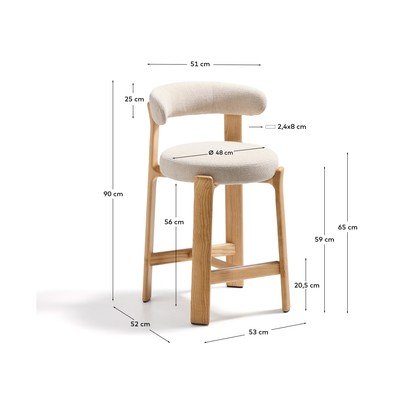 Barová židle Granite od značky Kave Home. Vyniká čalouněním z certifikovaného recyklovaného polyesteru a jasanovým dřevem z odpovědného lesního hospodářství.