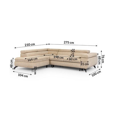 ŽinylkováPolohovací/rozkládací/s úložným prostoremLevý roh/do LBéžováVhodné pro mazlíčky/odolné vůči skvrnámČtyřmístnáŠířka 275 cm