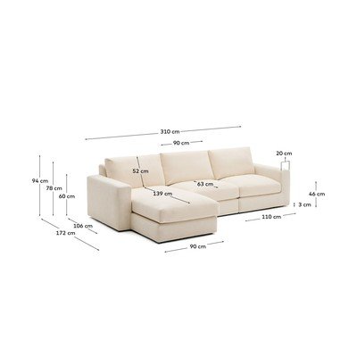 ŽinylkováLevý roh/s lenoškouSe snímatelným potahemBéžováČtyřmístnáŠířka 310 cmHloubka 172 cmHloubka sedáku 63 cm