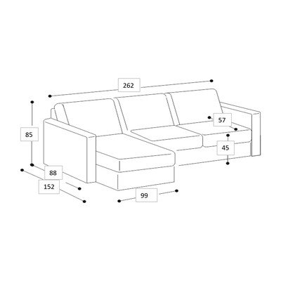 Žinylková, levý roh/s lenoškou, béžová, čtyřmístná, šířka 262 cm