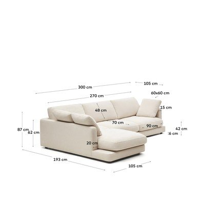 Rohová pohovka Gala od značky Kave Home. Nabízí mimořádný komfort díky výplni polštářů s efektem peří a potahy jsou navíc snímatelné a pratelné.