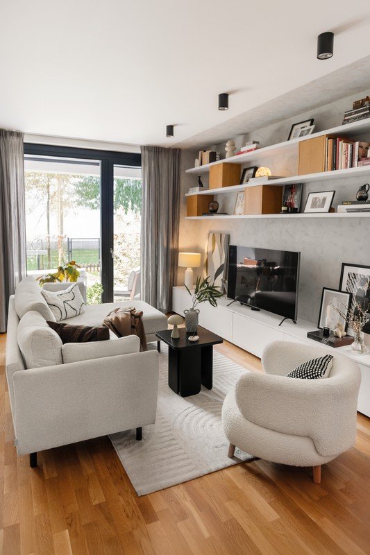 Křeslo Luisa od značky Kave Home. Textilie bouclé a oblé tvary lákají k posezení a zaručují útulné pohodlí.