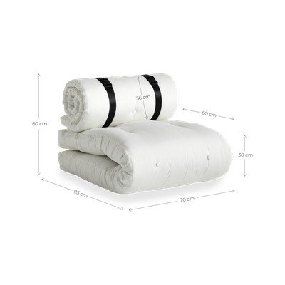 Během chvilky tak můžete mít z toho jednoho samého kusu nábytku jak postel pro jednoho, tak i pohodlnou pohovku. Buckle Up se skládá ze dvou matrací, přičemž ta vrchní je k té spodní připevněna dvěma pásky.