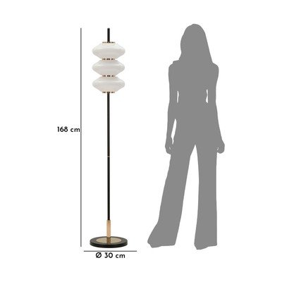 Se skleněným stínidlem, bílá/černá, výška 168 cm