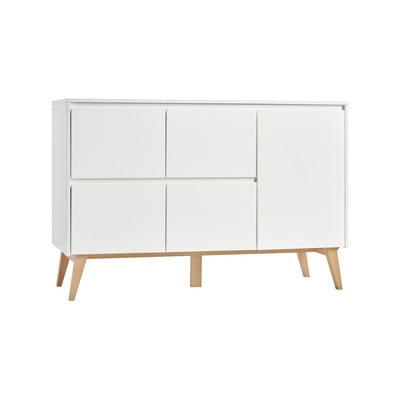 z masivního buku. Díky této šikovné barevné kombinaci komodu snadno sladíte se zbytkem interiéru. Kromě úložného prostoru také nabízí plochu pro