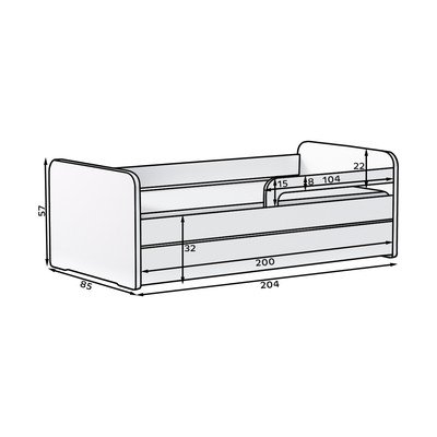 Dětská postel Duuli od značky ELTAP. Praktická ochranná zábrana a spodní výsuvný díl zajistí bezpečí a funkčnost.