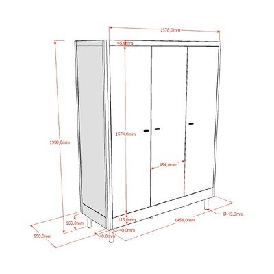 Z bukového dřeva, povrchová úprava: barva, bílá, šířka 146 cm, výška 190 cm, hloubka 55 cm