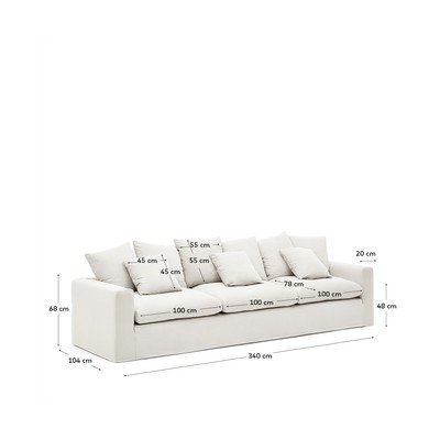 Lněná, se snímatelným potahem, bílá, vícemístná, šířka 340 cm