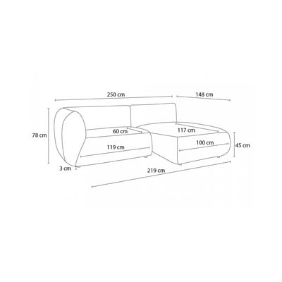 Manšestrová, levý roh, bílá, trojmístná, šířka 250 cm, hloubka 148 cm
