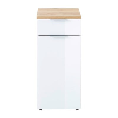 Koupelnová skříňka PescaraNízká, v dekoru dubu, z dřevotřísky, povrchová úprava: melamin, lesklá, bílá/v přírodní barvě, šířka 39 cm, výška 86 cm, hloubka 34 cm