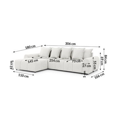 Levý roh/s lenoškouBíláVoděodolná/odolné vůči skvrnámČtyřmístnáŠířka 306 cm
