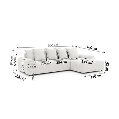 Pravý roh/s lenoškouBíláVoděodolná/odolné vůči skvrnámČtyřmístnáŠířka 306 cm