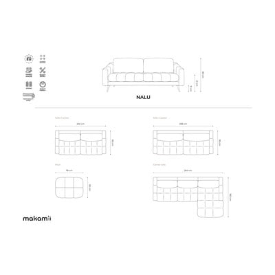 Světle modrá sametová pohovka 238 cm Nalu – Makamii