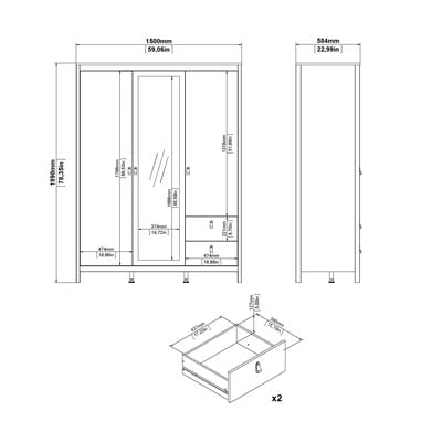 Se zrcadlemZ dřevotřískyPovrchová úprava: folieMatnáBíláŠířka 150 cmVýška 199 cmHloubka 58 cm